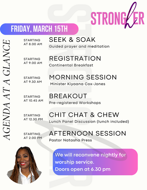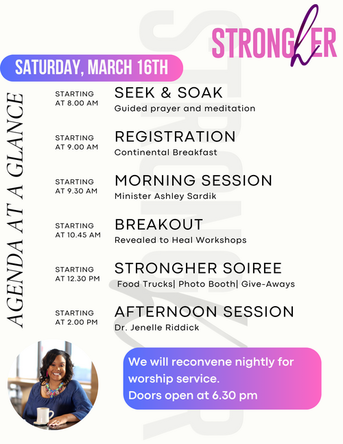 Strongher women!! Since 2020, we have prayed, cried worshipped, and sought the Lord together. He has faithfully healed, renewed and strengthened us for the journey.In all that we have endured, we know that it is not in vain, for Romans 8:19 declares that all of creation anxiously awaits the revealing of the sons and daughters of God. It is time for The Revealing. Join us for this two day encounter where we will step into divine purpose and experience an incredible journey of spiritual growth and empowerment.